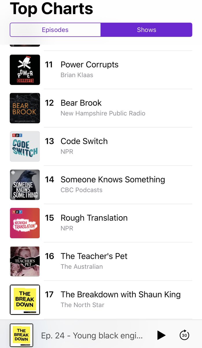 Good news! @TheBreakdown is still climbing the podcast charts! We’re currently the #17 News & Politics podcast in the world! Listen, subscribe, and leave a review now @ https://podcasts.apple.com/us/podcast/the-breakdown-with-shaun-king/id1457725100 …pic.twitter.com/fLI08s5DAE