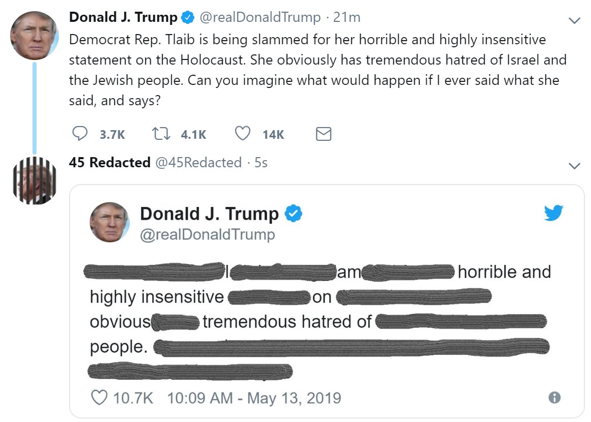 1. 45 Redacted‏ @45Redacted May 13