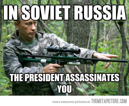 Clumsy Russians. If they're not falling, they're spraying themselves green.