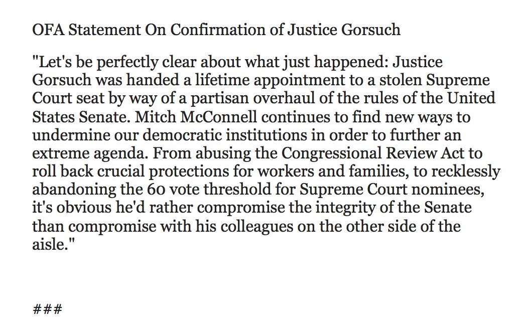 I absolutely agree with this. This Supreme Court seat was stolen from President Obama who had nearly a year left in his term. Despicablehttps://twitter.com/BraddJaffy/status/850377469286920193 …