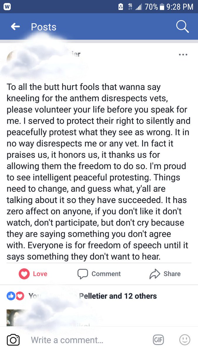 But they respect the anthem by yelling fuck you? The don't give a ISH about the anthem. They want to tell black people to accept injustice.