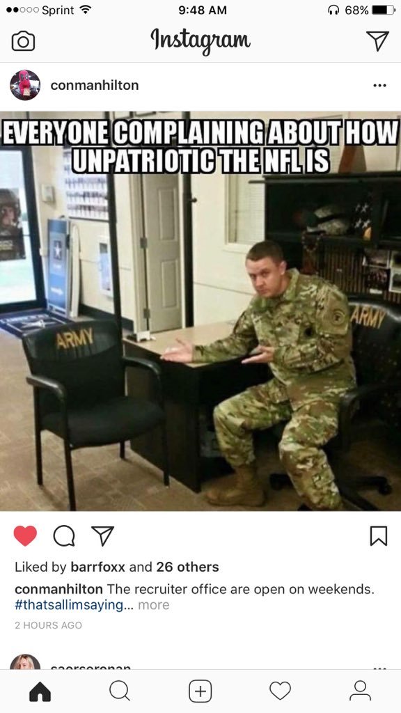 No great fan of Trump but the NFL doesn't get http://it.You don't dishonor your Country+Flag,protest the other 23 hrs 58 1/2 mins.