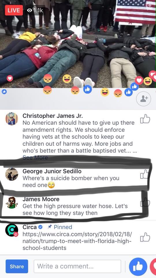 it’s horrifying. I have multiple “Parkland deniers” in my Instagram comments, describing the shooting as a government hoax. At first I thought they might be bots...now I think they’re real.