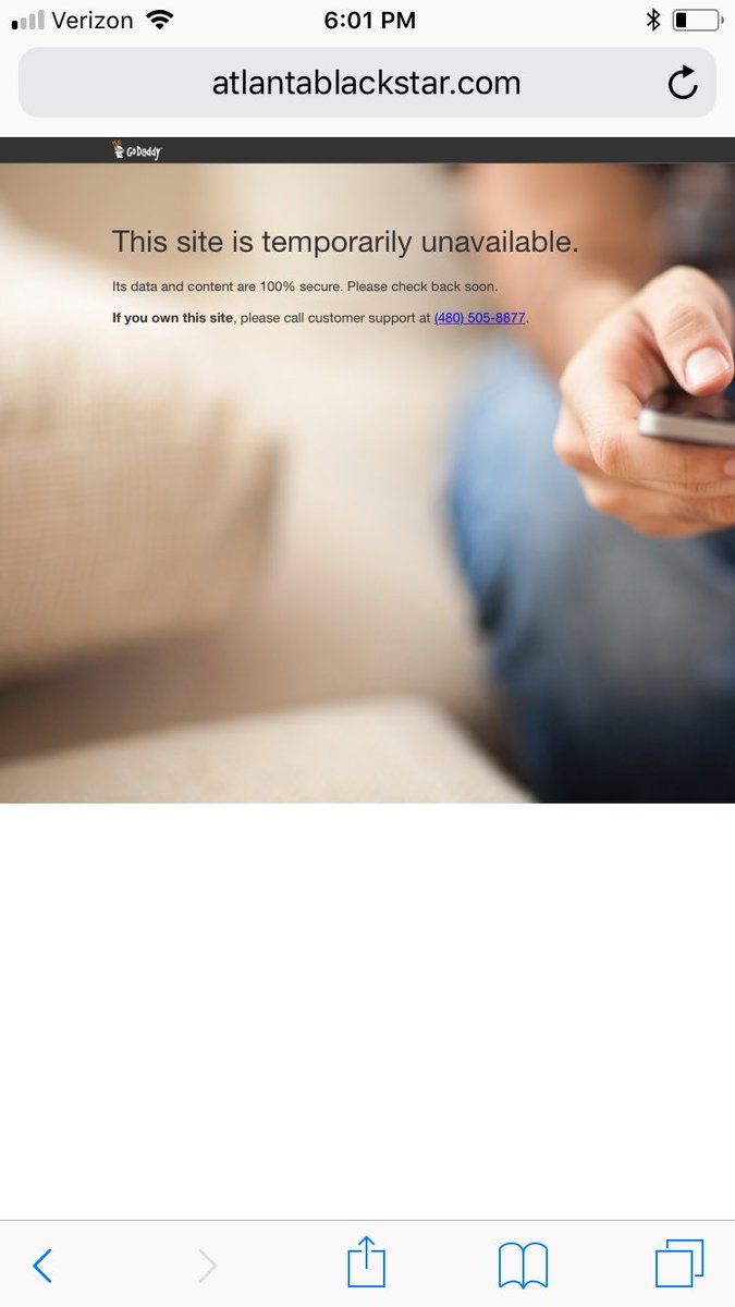 http://Godady.com  has deactivated our website http://Atlantablackstar.com  without warning. Their tech support are refusing to escalate the issue to get it resolved today. Suggesting we may have to wait 72 hours before re-activating it. Please share @GoDaddypic.twitter.com/nJVkNNPGoK