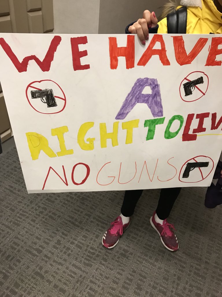 To all of the students walking out tomorrow: I am SO PROUD of you. 4 of my own children in elementary, middle, and high school will be walking out. They are making their protest signs & getting ready right now. This is my 9 year old. Her sign says: We Have a Right to Livepic.twitter.com/8dvRiwI1f4