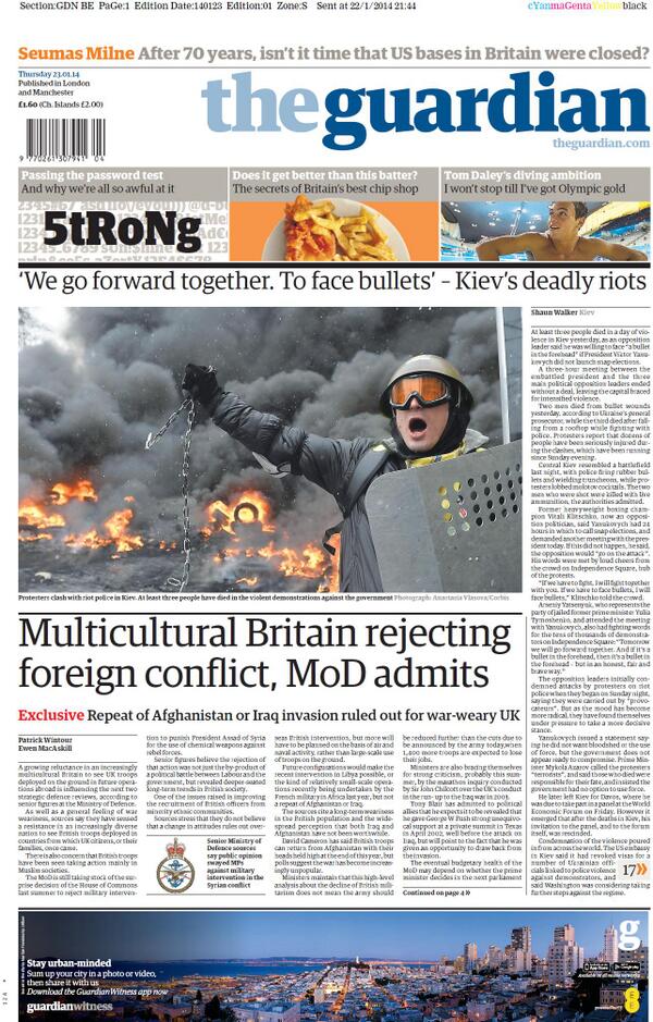 Thursday's Guardian - "Exclusive: Multicultural Britain rejecting foreign conflict, MoD admits" #tomorrowspaperstodaypic.twitter.com/0Mckyoqext