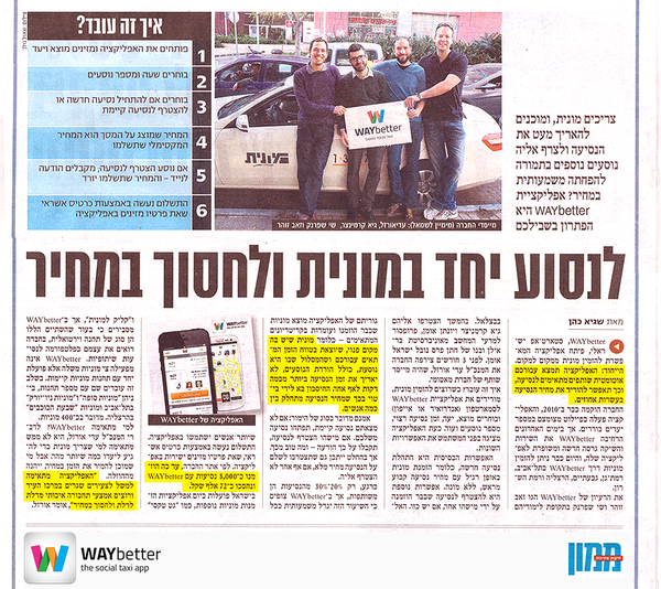 http://lnkd.in/P87Vh7 From "Yediot Achronot" - Share a taxi with WAYbetter.