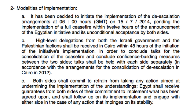 “@sheeraf: Text of Egypt proposal for ceasefire agreement. Hard to make sense of timing... H/T @PatrickKingsley pic.twitter.com/U4X00HIzM2”