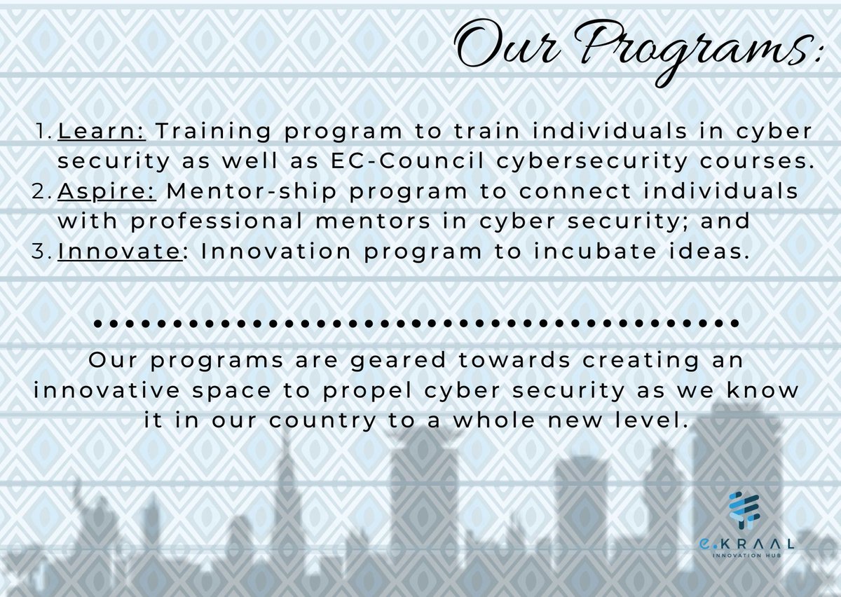 Our programs are geared towards creating an innovative space to propel cyber security as we know it in Kenya to a whole new level.