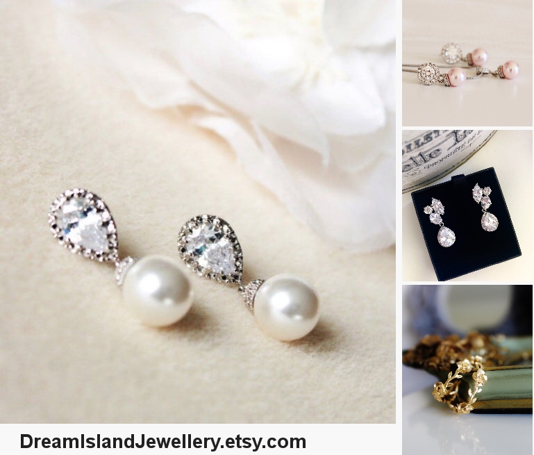 Pearl Bridal Earrings, Pearl Wedding Jewelry,