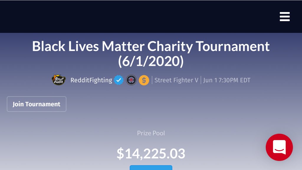 BLM Charity Tournament tonight. https://redditfighting.challonge.com/8n3ilkxf $200 to the charity of the winners choosing. Feel free to donate if willing and able: https://matcherino.com/t/blm612020 Our friends at