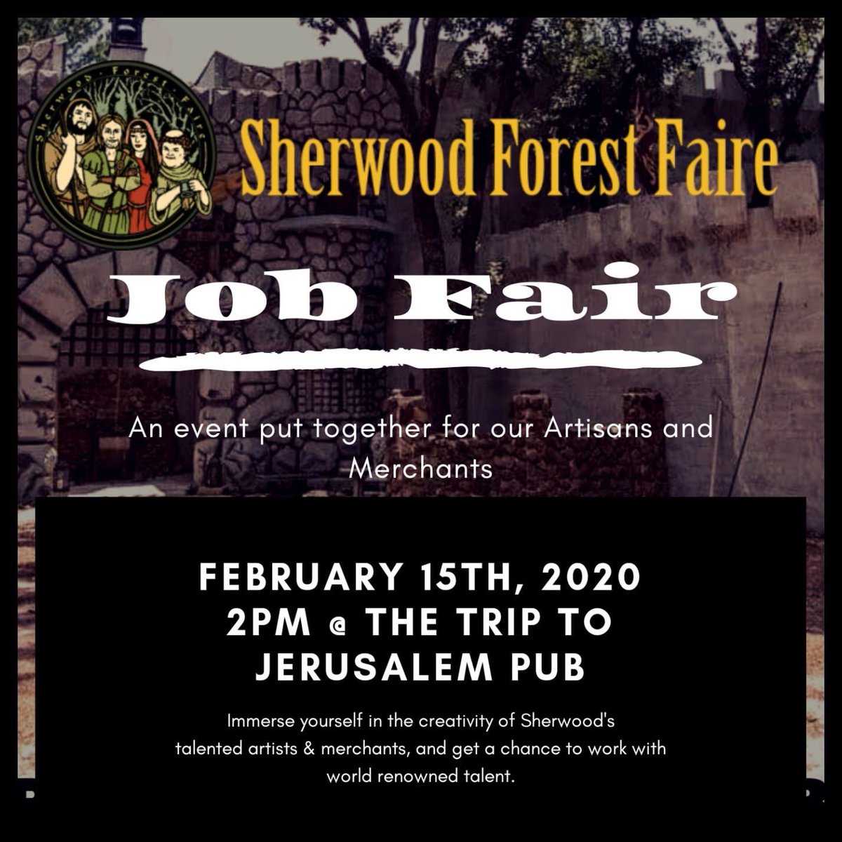 Job Faire! If you’ve ever wanted to work at Sherwood Forest Faire, now’s your chance! (Special thanks to Pandora for making this poster) http://www.sherwoodforestfaire.com