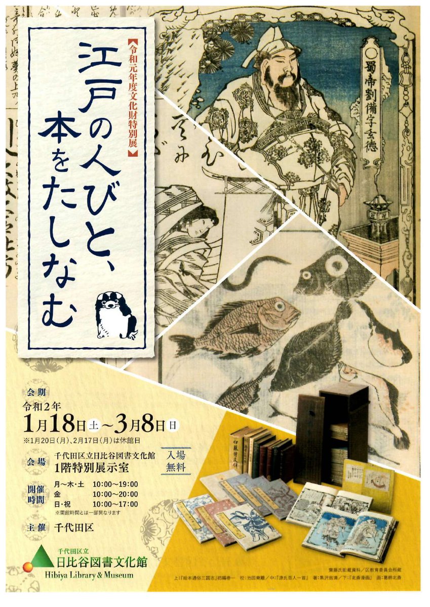 >RT 日比谷図書文化館の文化財特別展「江戸の人びと、本をたしなむ」 http://edo-chiyoda.jp/tokubetsu.html ~3/8(日)まで 斎藤吉之旧蔵の和本コレクションをもとに、江戸時代の書物・蔵書文化を展観 2月14日 ギャラリートーク 2月15日 関連講演会「知を編む江戸の人びと―江戸時代の書物・蔵書を読み解く―」pic.twitter.com/gaSHHcJ5yu