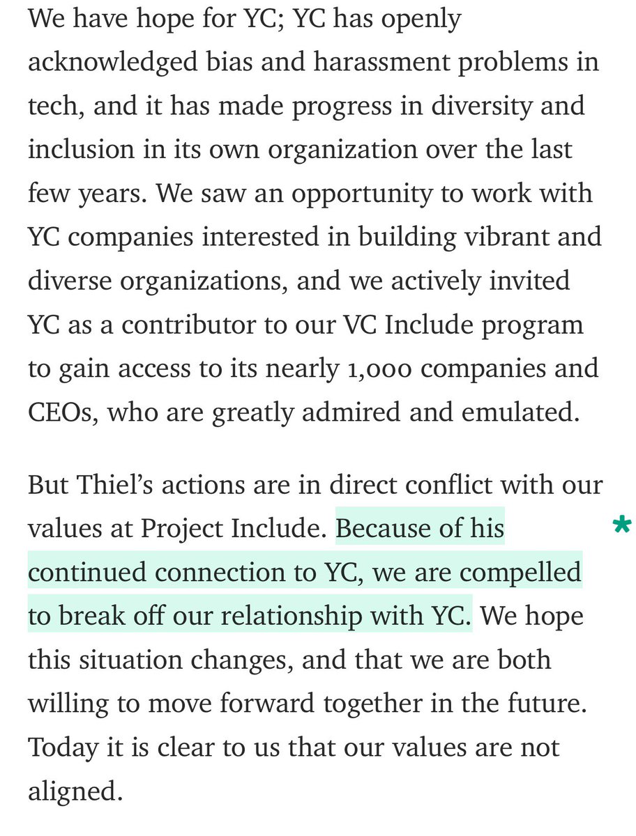 Wow. Project Include dumps Y Combinator over Thiel relationship. Via