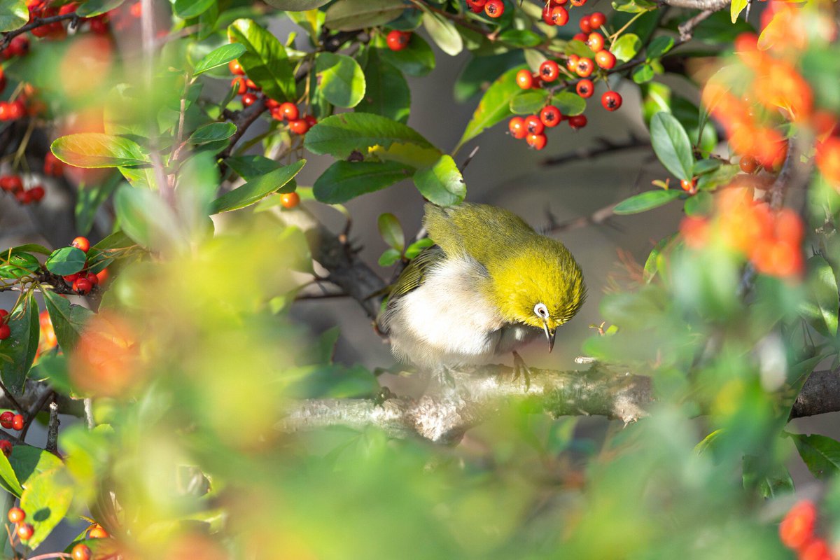 今日の最後はメジロちゃん。2羽が寄り添っての毛づくろいしあう姿は考えるだけでも微笑ましい。・・・まだ未撮ですけどぉ~。素晴らしい写真を撮れる可能性を秘めています。野鳥知らない方にはウグイスと思われがちですけどね(笑