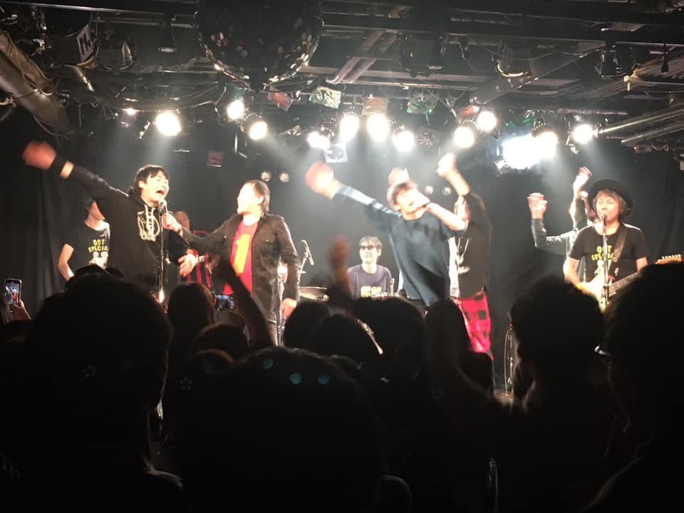 勝に、誘われて軽いのりでライブに行ったら、ししとうの、再結成。FF0000の新曲、51.でかなり盛り上がっていたら、元ハイローズの大島さんたちがロックしてました。最後に勝山とサイトウ君は本物をバックに、日曜日よりの使者を歌ってしまった。ホボ犯罪的な日曜日。 ありがとう。今日は泣かされた。pic.twitter.com/5Lq30NcjRB