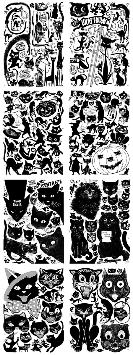 Finally, I designed a page of black cat artist stamps, now lovingly silkscreened by the splendid Portland Stamp Company! This limited edition set is printed on gummed paper and perforated for your sensual pleasure. Sold separately to benefit Buyolympia!https://buyolympia.com/Item/portland-stamp-company-crap-hound-cats-stamps …