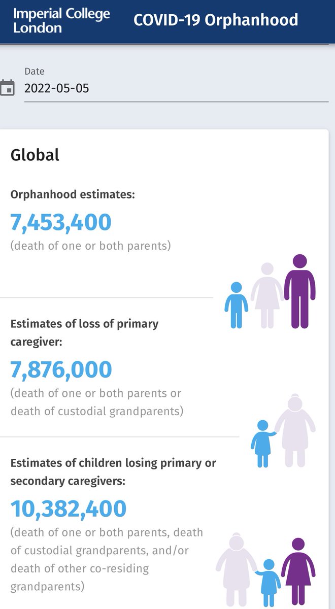 Over 7 million children globally are estimated to have been orphaned by covid. Over 10 lost a primary or secondary caregiver