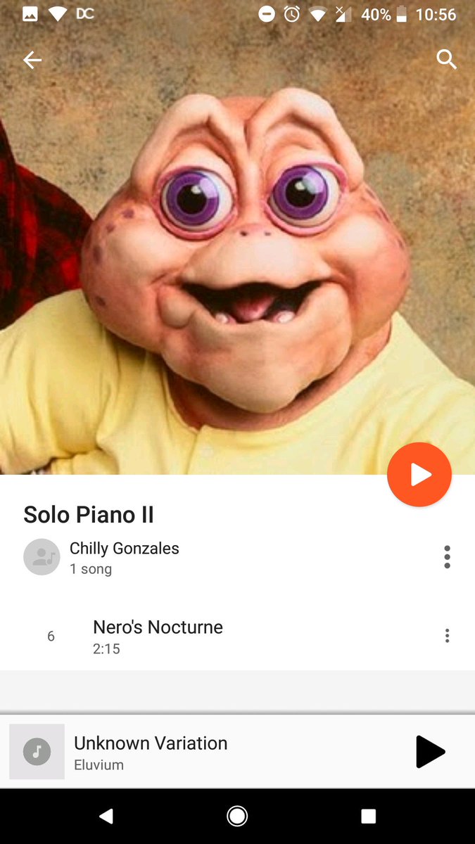 To be clear, the image was my own, from deep in the meme-flavoured recesses of my previous phone, but I've no idea why it was selected out of 6,000 random jpegs to be the sole default image used for any song that has no cover art. It's wonderful. Buy a Pixel.pic.twitter.com/S7n75eOgiz