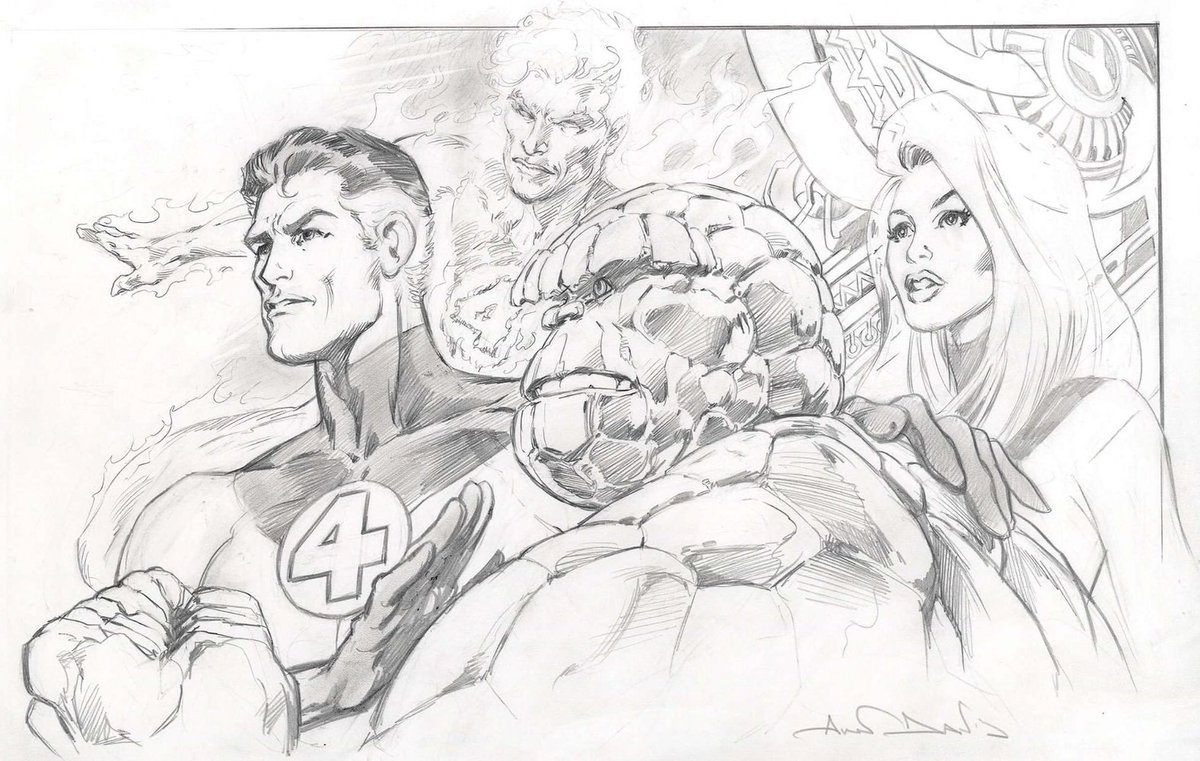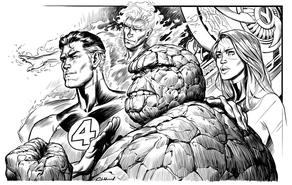 @kristaferanka's#inkingchallenge on this Alan Davis piece! I kinda treated it like I was inking my own work, which included a fair number of tweaks to the pencils—most notably fixing up Sue's face/hair, and inking Ben like I would any other rock formation