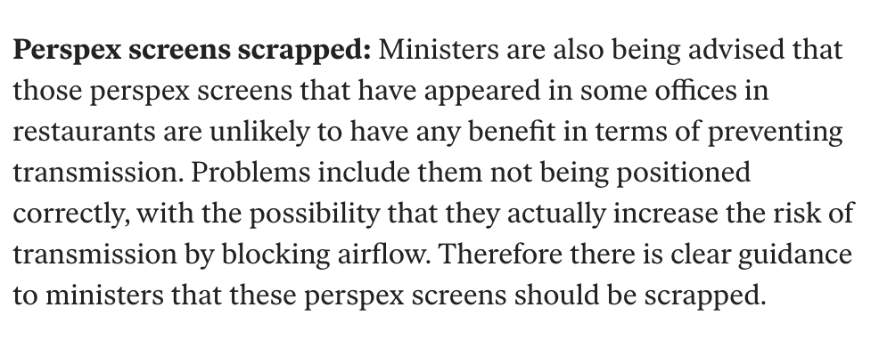 You know those Perspex screens that have been put up in some offices and restaurants? Ministers have been told they don't work and might actually make things worse https://politi.co/3svJcDk pic.twitter.com/S2tL6ufhtU