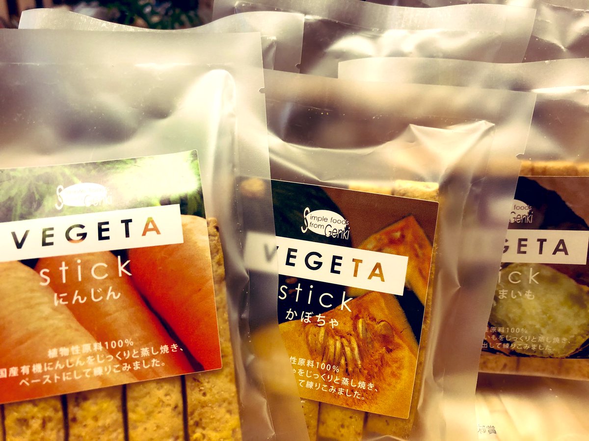 #げんきタウン の#オコメビスケ#ベジタスティック を 再入荷しました。 野菜本来のうまみを いかしたおやつとなっております。 ぜひ1度、お試しください
