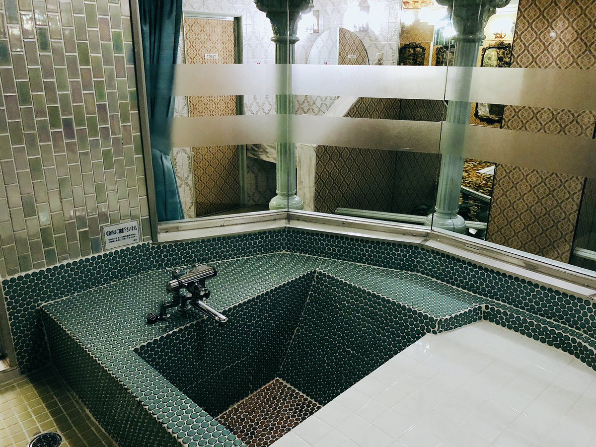 ローマと同じタイプでタイルのお風呂浴室内のタイルが偏光パールなタイルとかお部屋のライトの透き通ったブルーとか素敵過ぎてため息…pic.twitter.com/hkwuatbLWh
