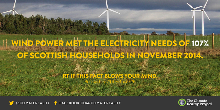 Wind power met the electricity needs of 107% of Scottish households in November 2014.