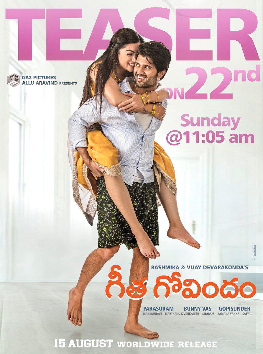 #GeethaGovindam will be out on July 22nd at 11:05AM.@Thedeverakonda@IamRashmika#GeethaGovindamTeaserOnJuly22ndpic.twitter.com/NpVm8OAvMc