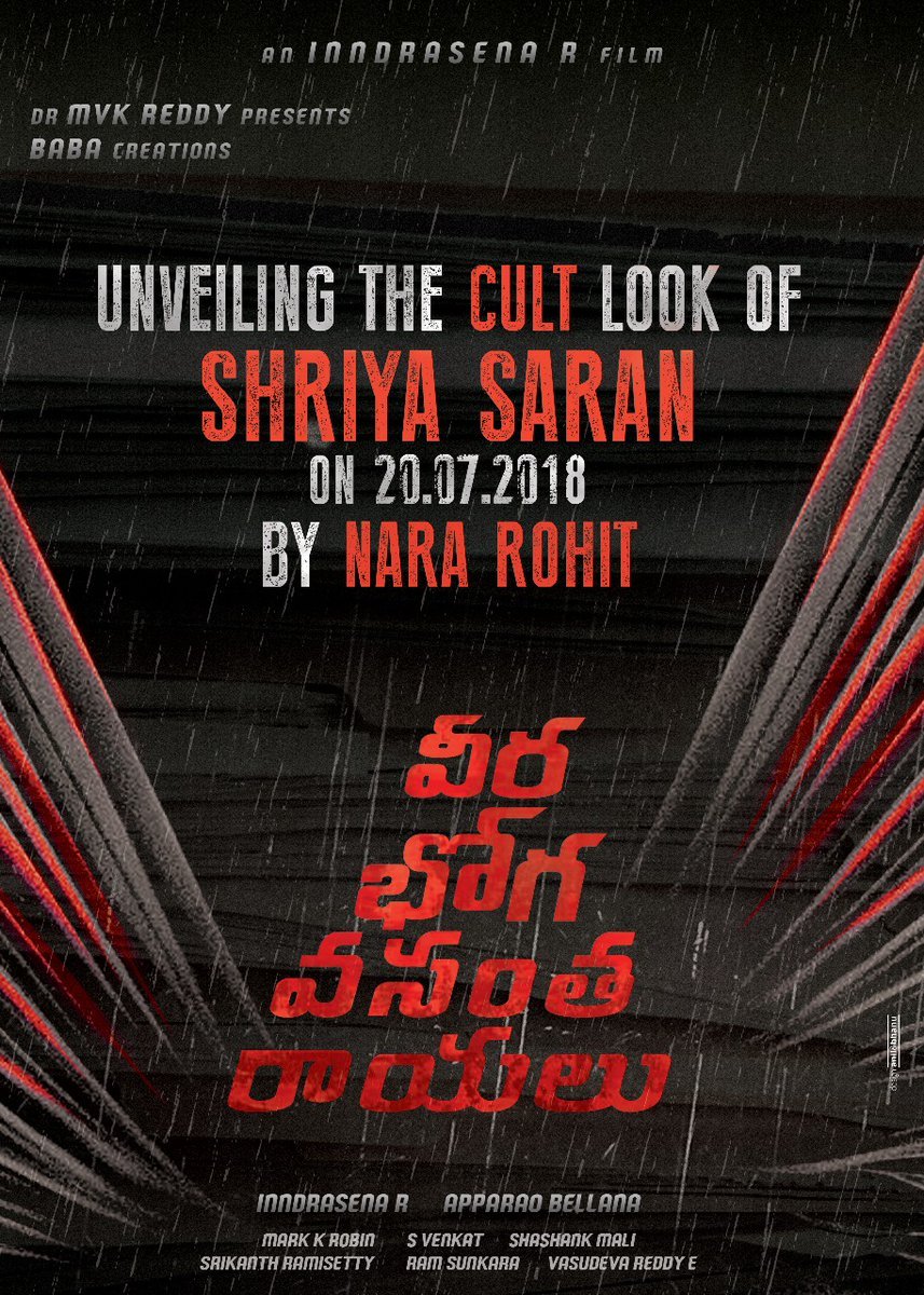 @shriya1109 from#VeeraBhogaVasanthaRayalu will be out tomorrow. The look will be released by#NaraRohit#ShriyaCULTLook#CultIsRising#VBVR@isudheerbabu@sreevishnuoffl Directed by#IndrasenaRpic.twitter.com/of1HkLvU81