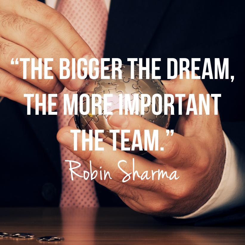@_robin_sharma: The bigger the dream, the more important the teampic.twitter.com/MxQy2GZpim