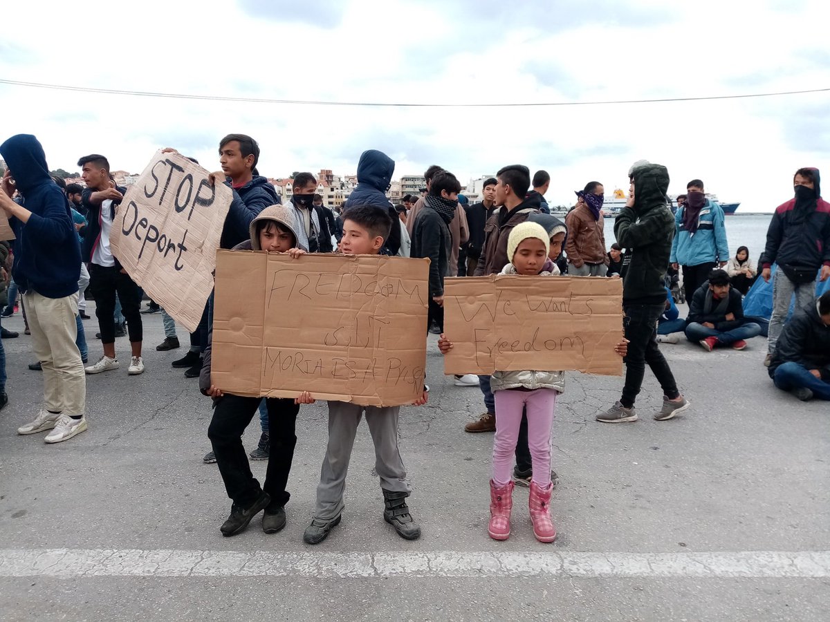 #Moria marchan hacia la capital de la isla con el propósito de levantar tiendas en la ciudad. Y el campo de Kará Tepé, desalojado por el uso de gases lacrimógenos.#Lesbos situación insostenible#refugiadoshttps://twitter.com/EFSYNTAKTON/status/1224283778081808384 …