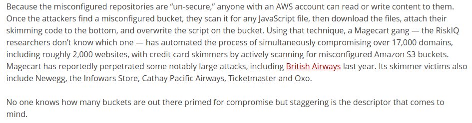 "No one knows how many buckets are out there primed for compromise but staggering is the descriptor that comes to mind. " - https://zurl.co/HdDq Recently we've heard people think data is more secure stored on a cloud provider. Read more here: https://www.linkedin.com/posts/lakebed_no-one-knows-how-many-buckets-are-out-there-activity-6628364444953034752-eB18 …pic.twitter.com/iGMC8dhepe