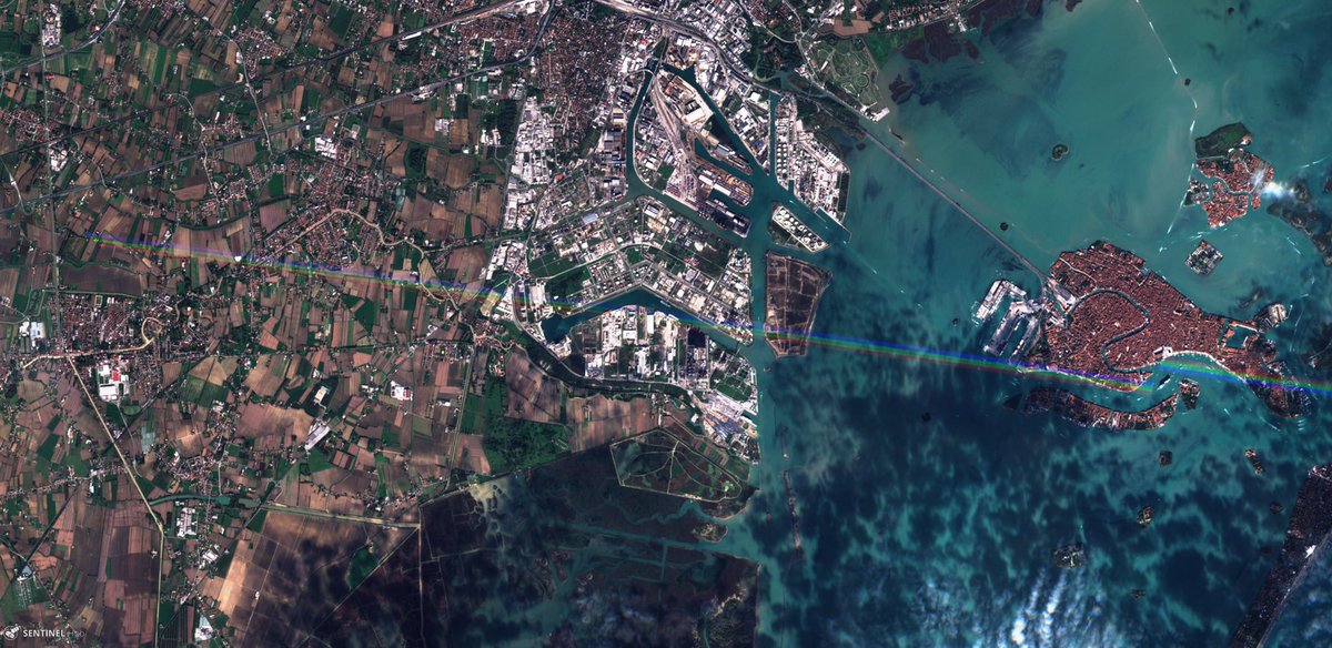 region after the torrential rains of end October, we did not notice this airplane flying over Venice, and the nice rainbow coloured-contrail