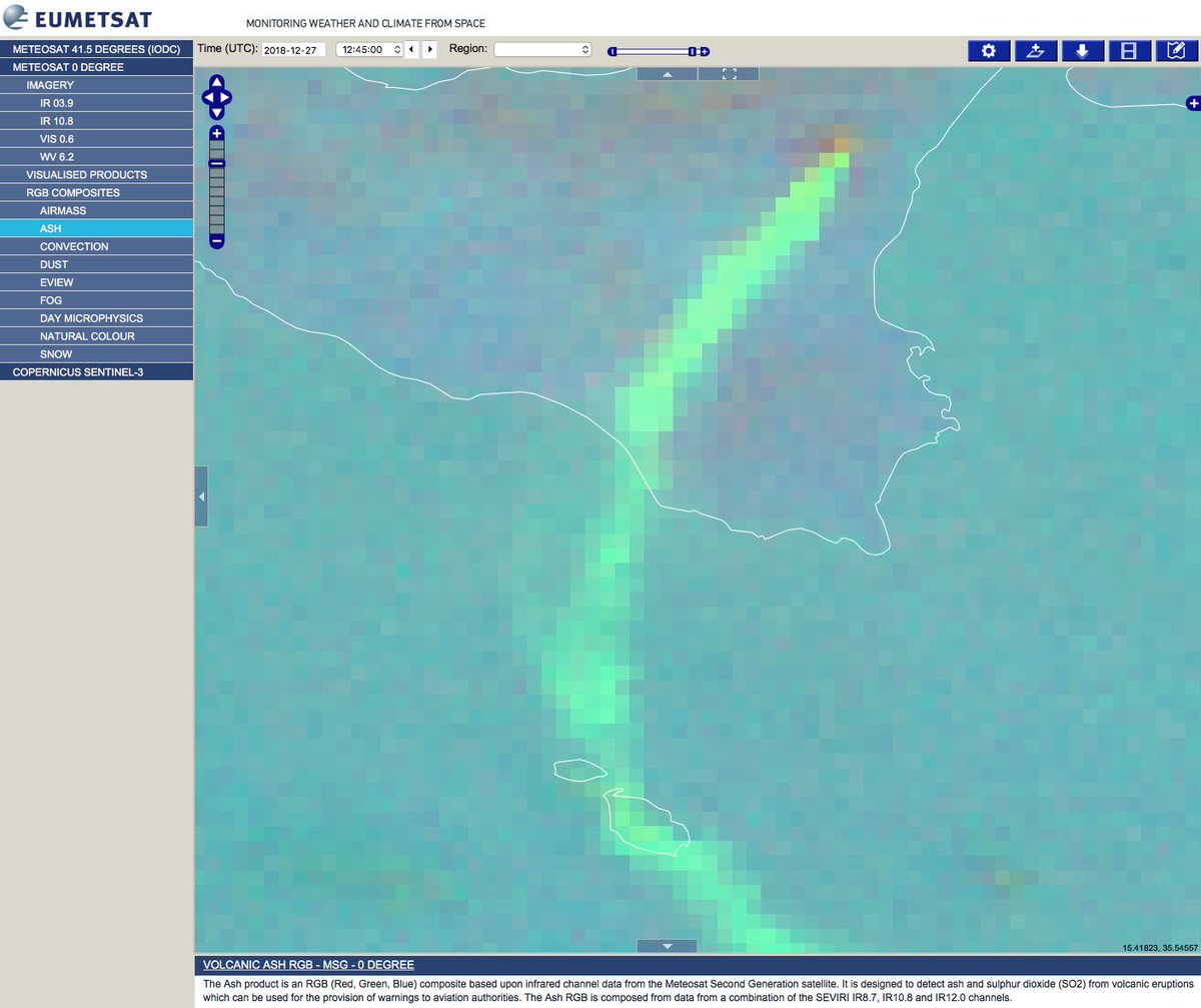This multispectral "Ash" RGB composite from @eumetsat's #Meteosat MSG visualised by EUMETSAT's IPPS for EUMETView shows how the ash from #volcano #Etna was transported to #Malta on the 27th of December 2018 around midday.pic.twitter.com/36UYVaxdqD