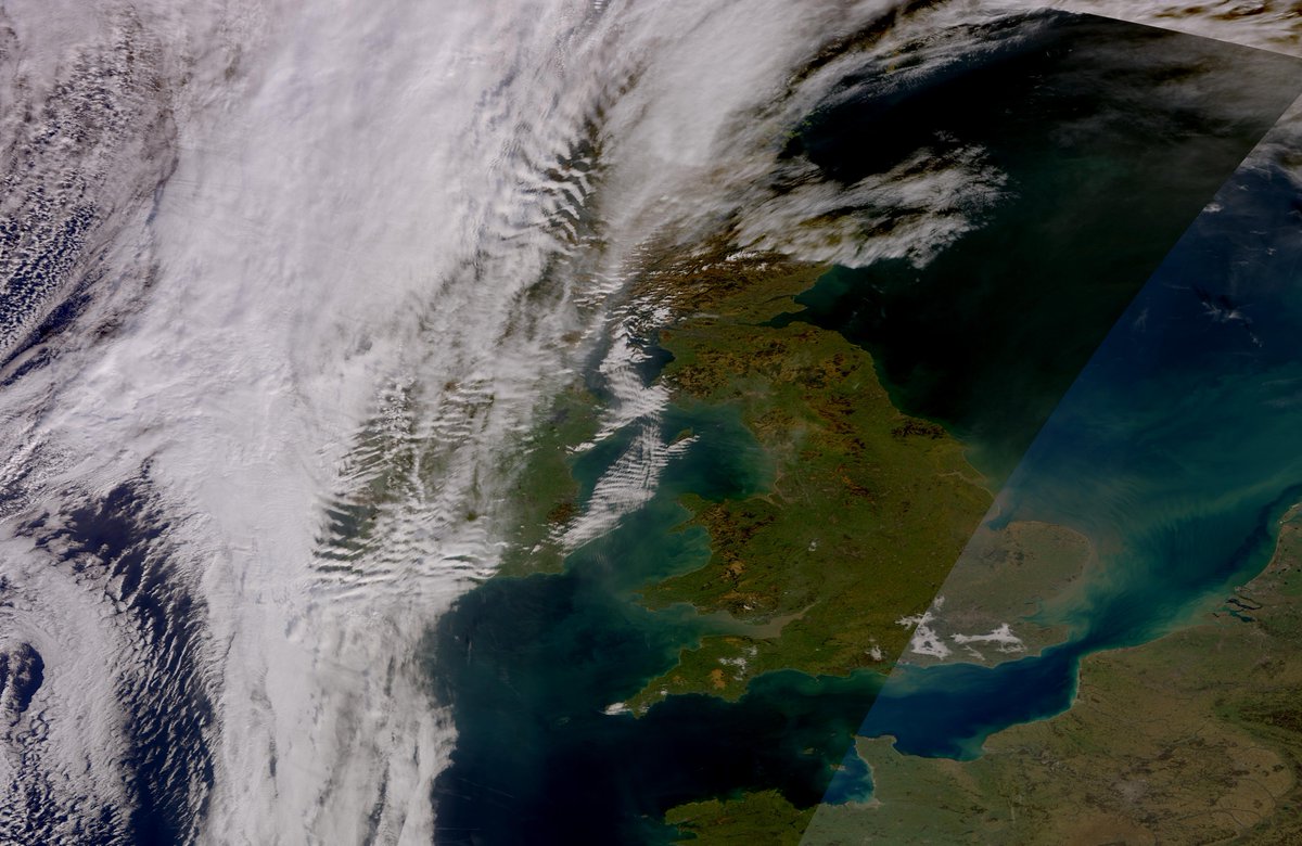 And from geostationary orbit MSG2 looked like this. You really see how much sea colour OLCI gets. Only thing MSG shows better is snow and ice as blue (some snow E of Inverness)pic.twitter.com/thQGfdY78n