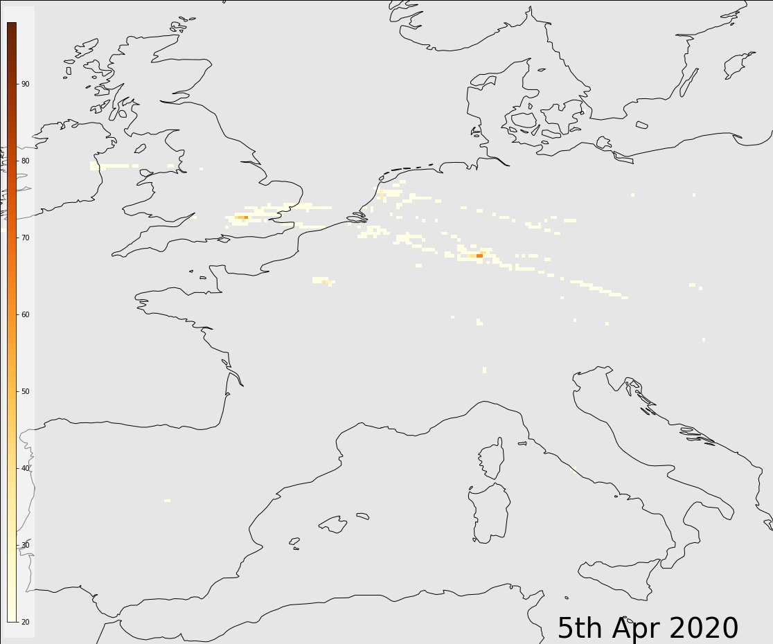 Any ideas about the climate impacts of any extended lock-down on European summer? Less man-made floating sunscreen may mean more intense light during the day and cooler temps at night?