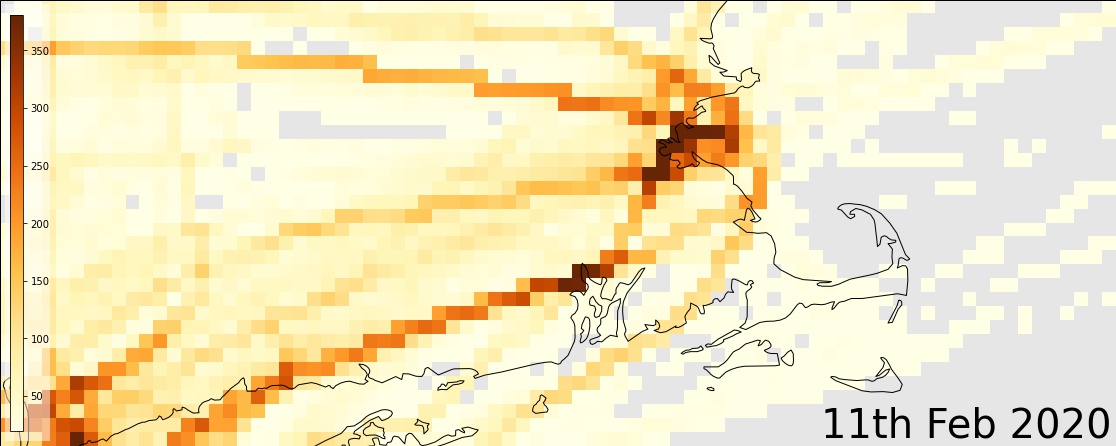 Flights across the NE USA, a comparison between mid-Feb and mid-April.