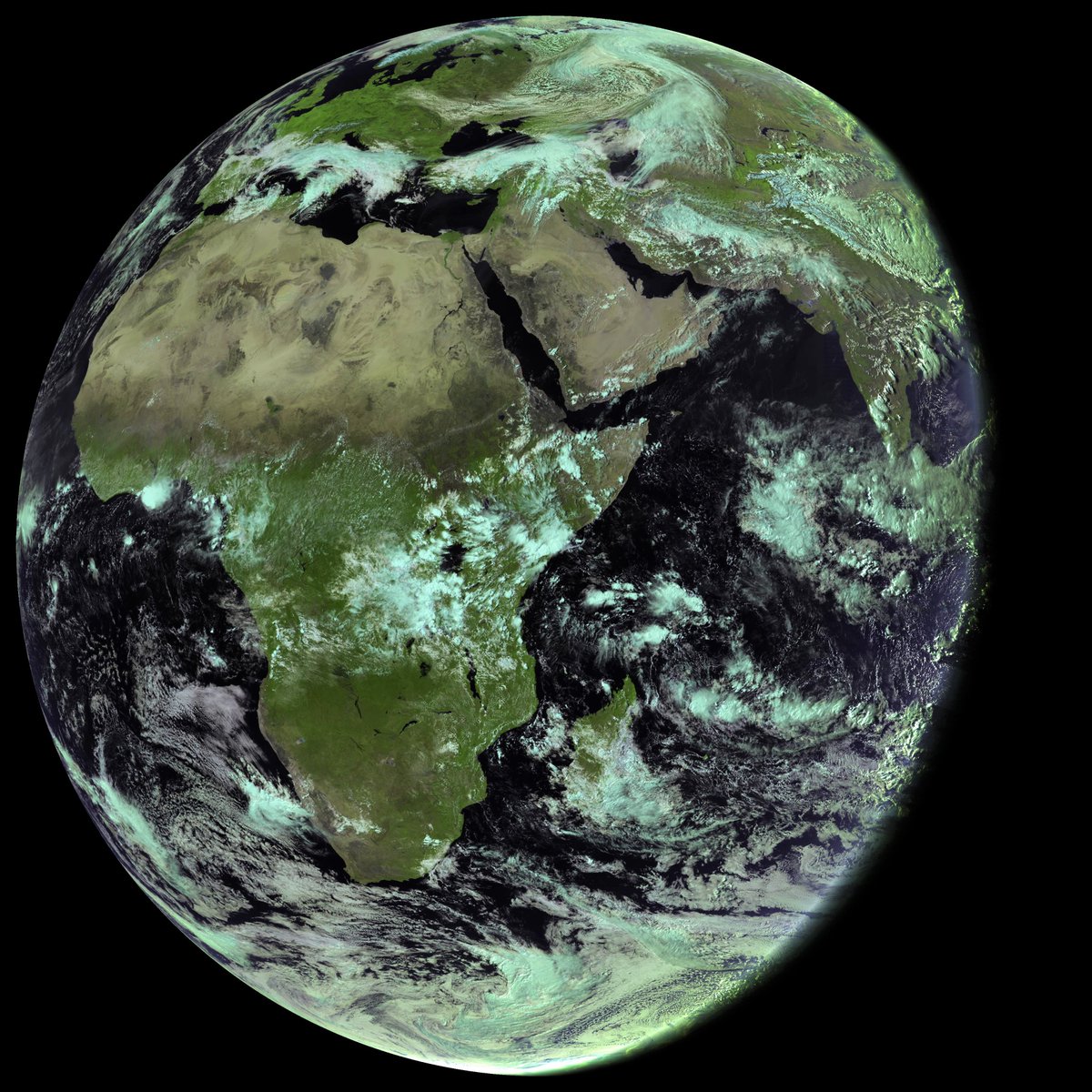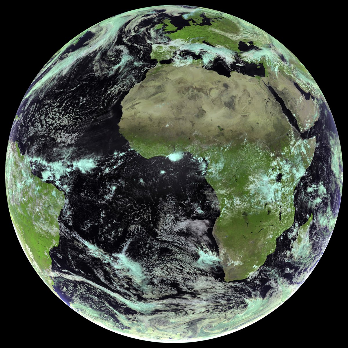 Today is #EarthDay, so here's two pictures produced by @eumetsat's #Meteosat satellites, both from 12:00 UTC today. Despite working with images like these for 14 years, I continue to be awed by how beautiful our planet is.pic.twitter.com/CJi5HPILtx