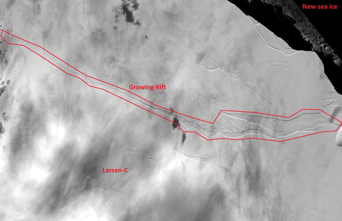 A view of the #LarsenC rift from @NASA_Landsat, the crack clearly visible in this super-hi-resolution data. Info: http://www.bbc.co.uk/news/science-environment-38522954 …pic.twitter.com/CRRITwDqdd