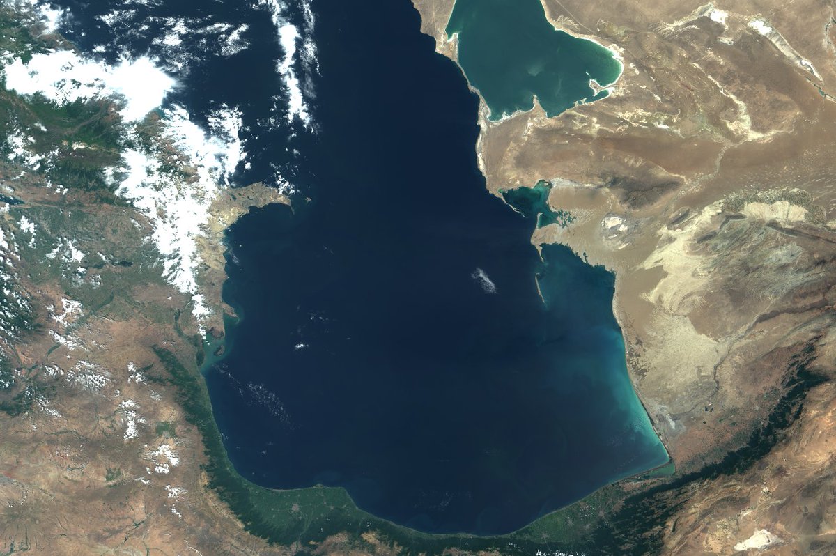 At first glance, this #OLCI pic of the Caspian Sea looks calm and quiet. But increase the brightness and all sorts of patterns appear!pic.twitter.com/hYExLugnXx