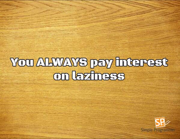 @jsonmez You ALWAYS pay interest on laziness pic.twitter.com/uvVBPbKMhV This is so true!