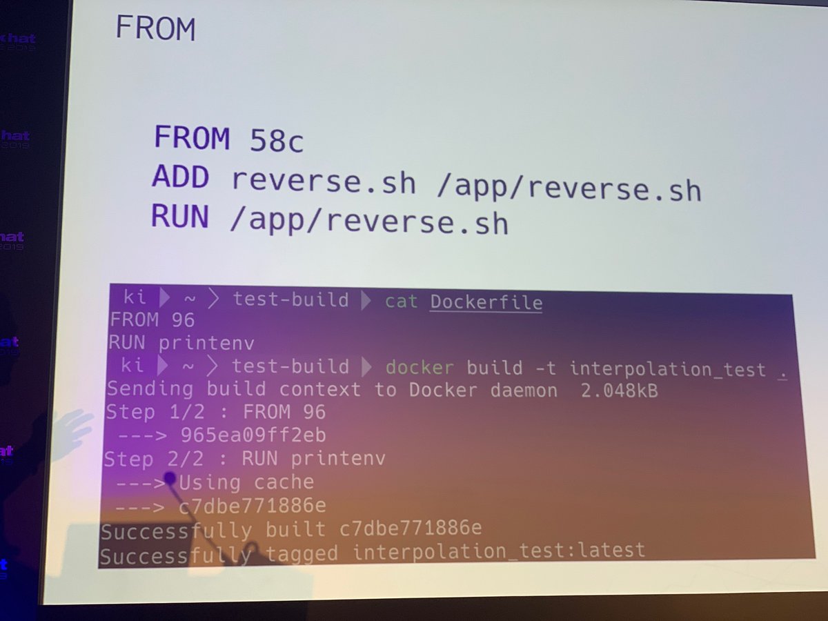 Docker’s FROM directive autocompletes image hashes, so you can “FROM 9” and if there is a single image hash starting with 9 on the build host it will be used. So you can brute build host cache’d images on cloud based build systems. By @uchi_mata @brompwnie @_staaldraadpic.twitter.com/5K54QkuhwT