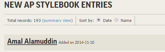 Side benefit of marrying George Clooney: You get added to the AP stylebookpic.twitter.com/cnVTaK7UqA