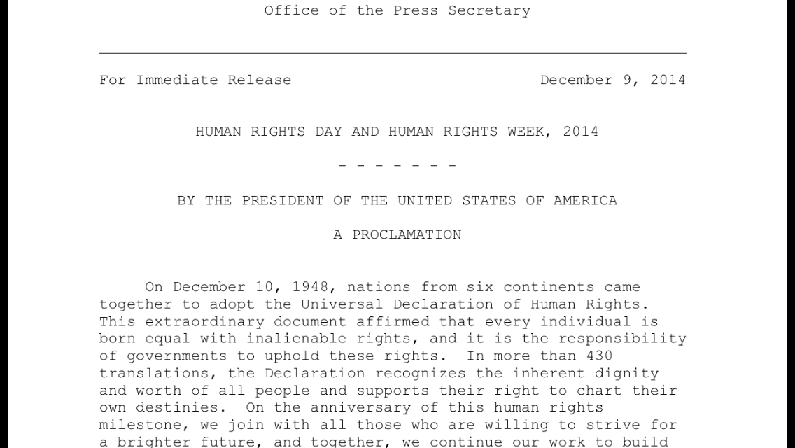 Irony alert: Obama just issued proclamation declaring Human Rights Weekpic.twitter.com/5zVdJvTiF5
