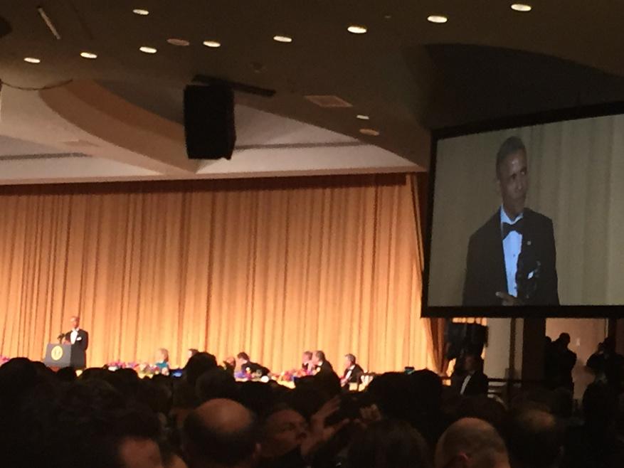 Obama takes stage at #WHCD2015 (from the cheap seats)pic.twitter.com/LnKYhLLlEs