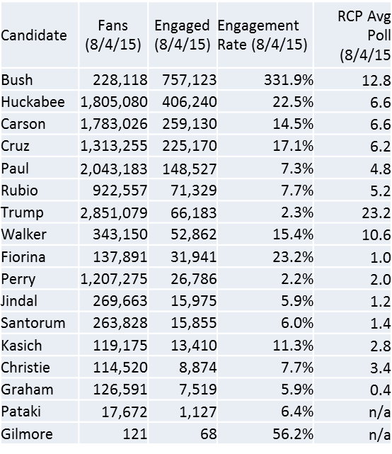 TOP8 #2016 GOP candidates in polls are also TOP8 for Facebook engagements in past week. @singernews @DavidShusterpic.twitter.com/s3AVNrLVOs