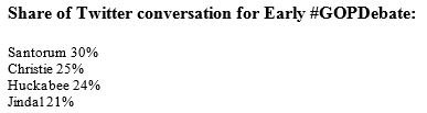 Early debate results from Twitter (remember this is quantity, NOT sentiment)pic.twitter.com/Iqx3VyCNo5