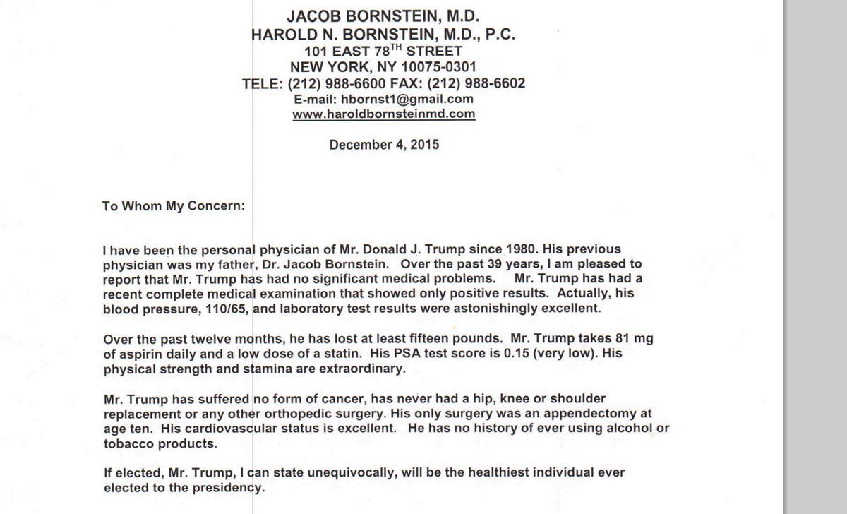 "... the healthiest individual ever elected to the presidency." EVERRRR!https://twitter.com/Bencjacobs/status/676472198748577792 …