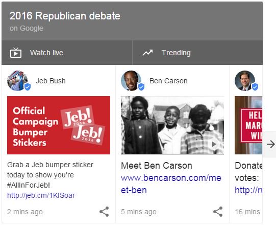 Main stage candidates now populating @Google experimental window -pic.twitter.com/5TTklmH13x